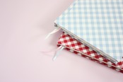 掲載写真のうち、右の赤色のギンガムチェックのノートになります(⑅˃◡˂⑅)