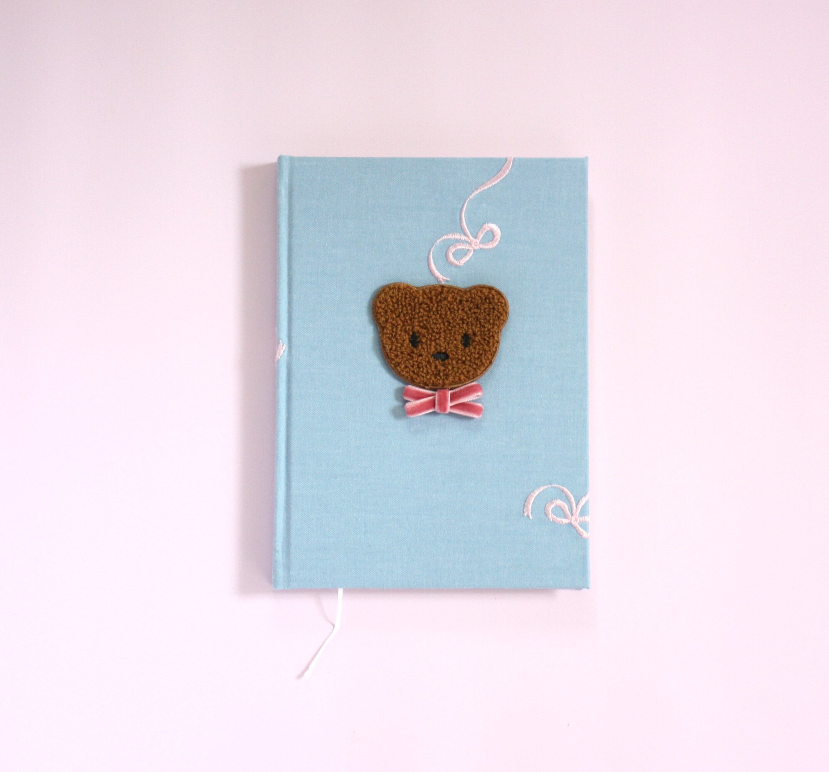 A5サイズで使いやすく、愛らしいクマと、リボンの刺繍が特徴のノートです。