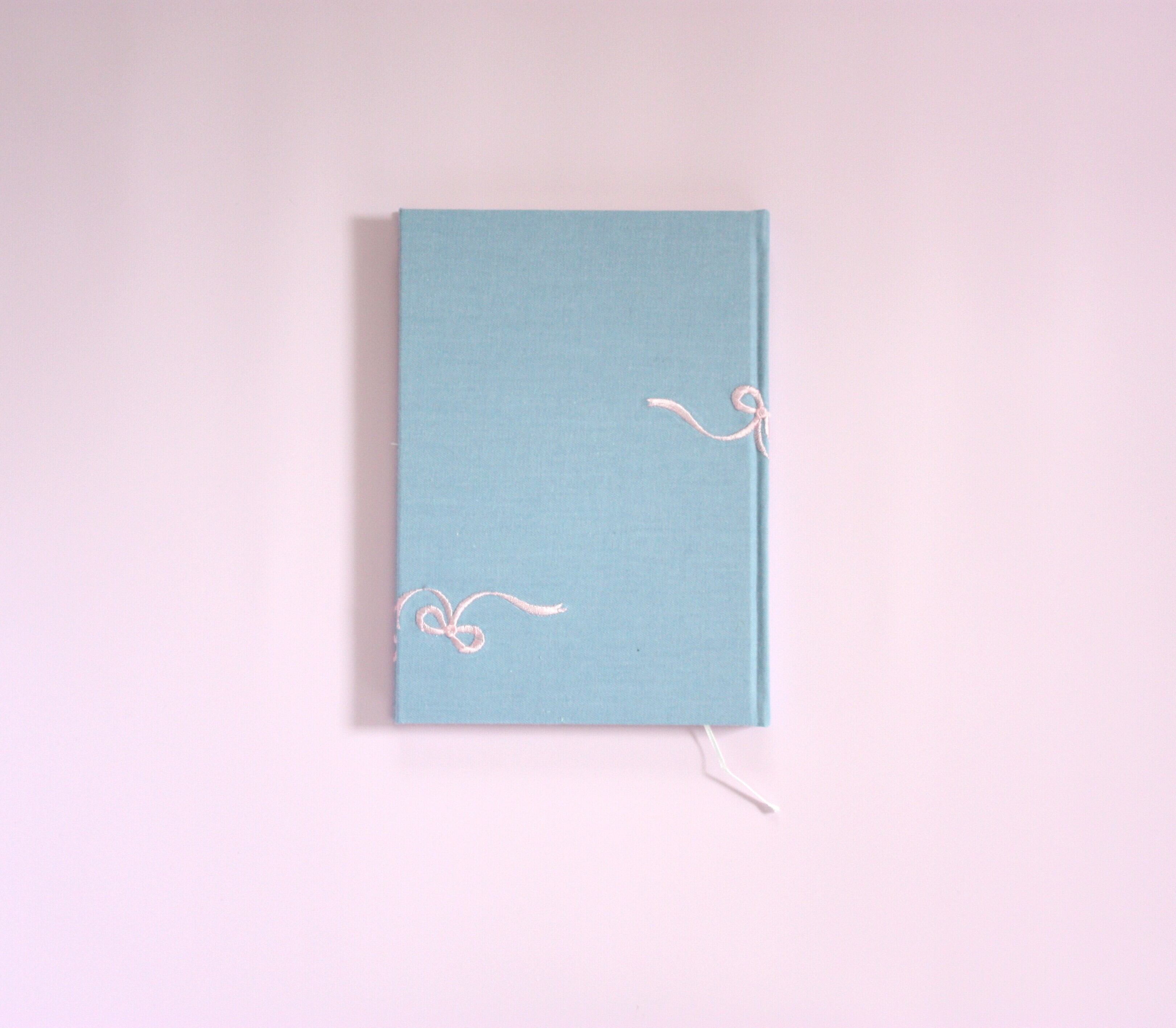 品の良いハードカバーと、生地やアップリケ、リボンの縫い目や刺繍の質感が楽しめ、使う度にワクワクし癒されるノートです。