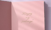 ノートの角の飾り布はゴールド生地を、ノートの見返しにはコーラルピンクの紙を使い、